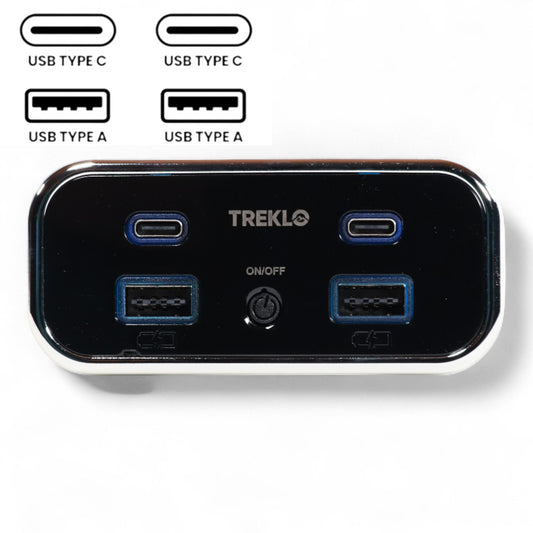 Treklo - MultiCharge Quad USB-A + USBC Recessed Mount 12-24V (Chrome)