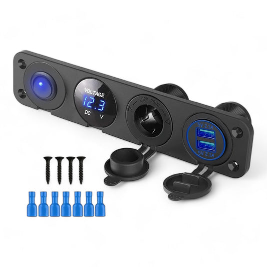 4 In 1 USB, 12v Socket, Voltmeter and Switch (Surface Mount)