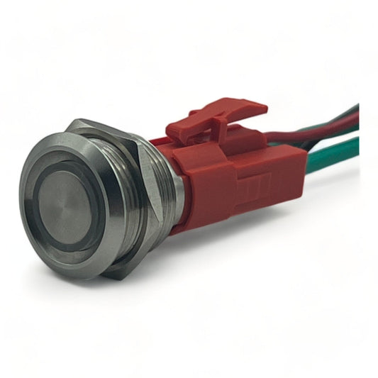 19mm LED Red Push Button Switch - Stainless Steel Finish - 12-24V