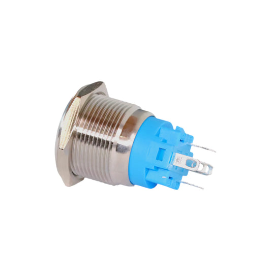 19mm LED Blue Push Button Switch - Stainless Steel Finish - 12-24V