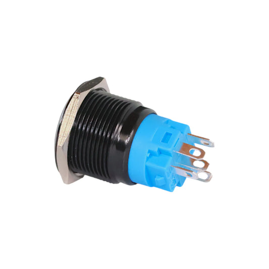 19mm LED Blue Push Button Switch - Black Anodised Finish - 12-24V