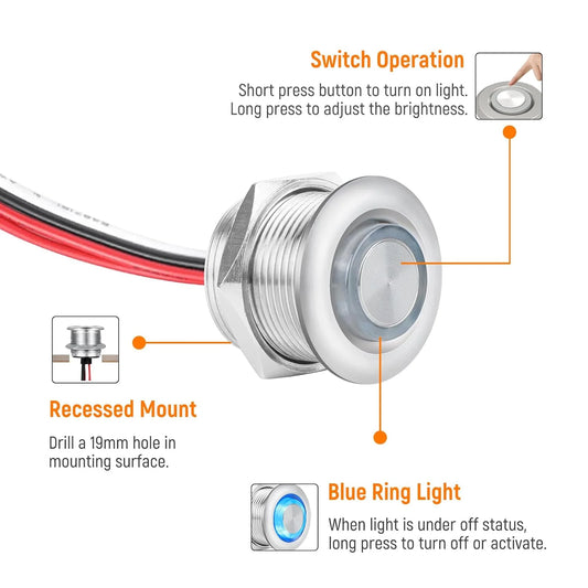 LED Aluminum Silver Dimmer Switch (RED)