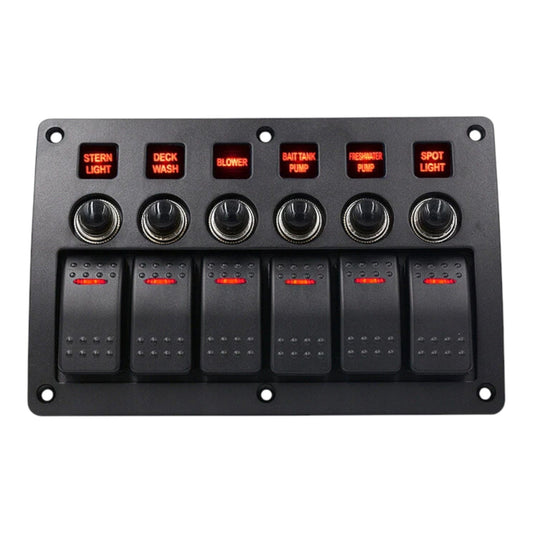 6 Way Rocker Switch Panel with Circuit Breakers (Red LED)