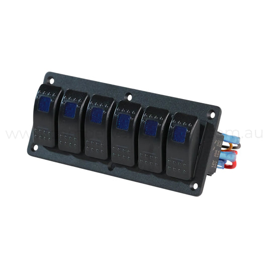 6 Way Rocker Switch Panel Single LED (Red, Green or Blue)