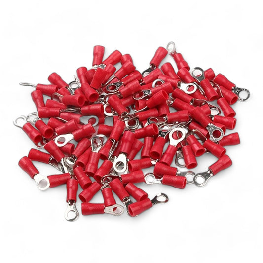 RED M4 Insulated Ring Terminal, 0.5mm² to 1.5mm² Wire Size 50 Pack